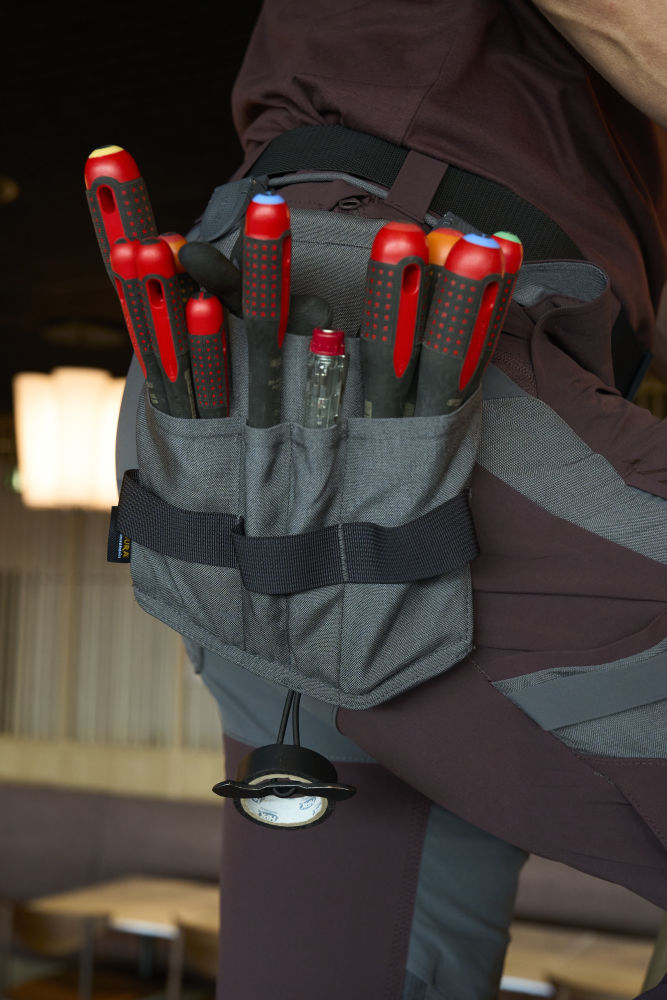 - Spacious pockets, pockets for screwdrivers and pliers and a holder for insulating tape.
